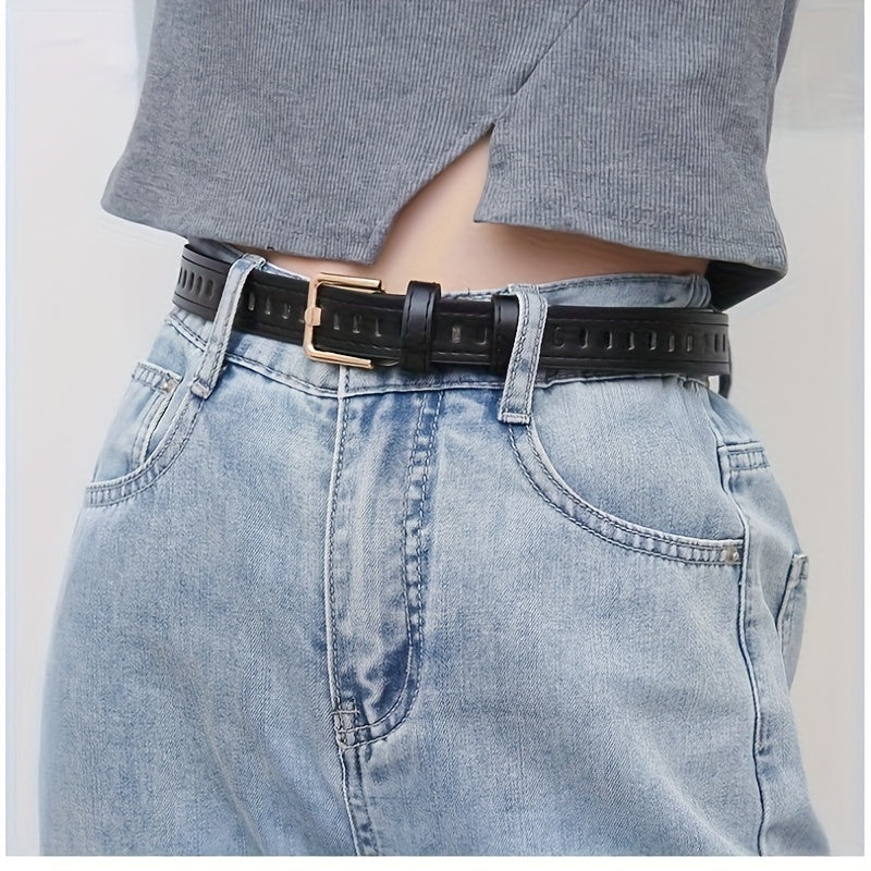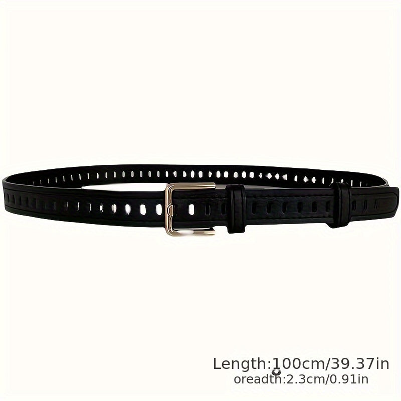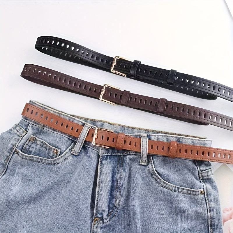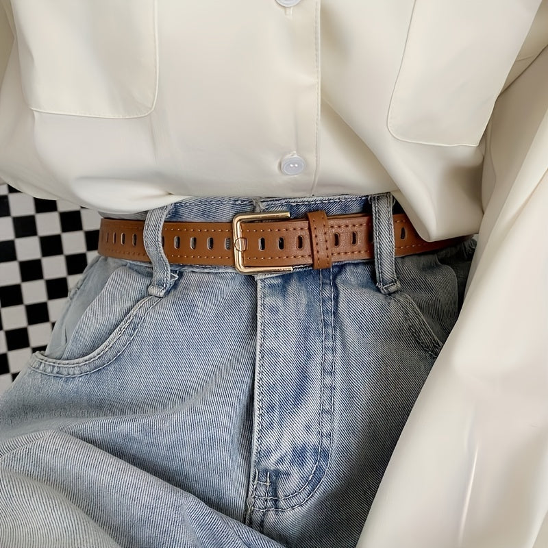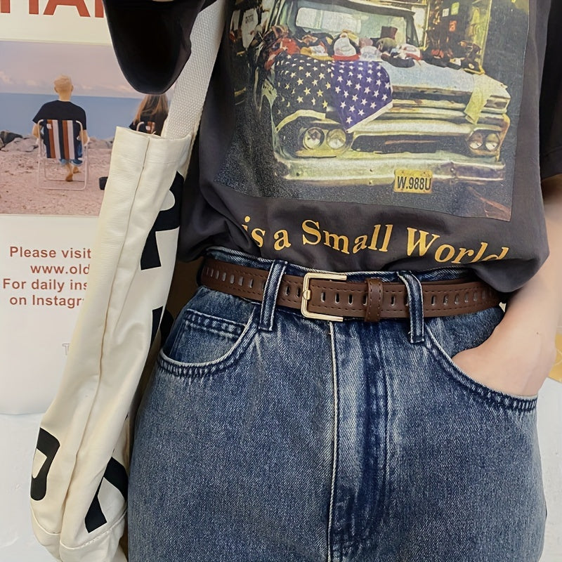 Brown casual belt suitable for jeans, dresses, weddings, parties, and daily wear. Made of vintage PU material with a stylish hollow-out design.
