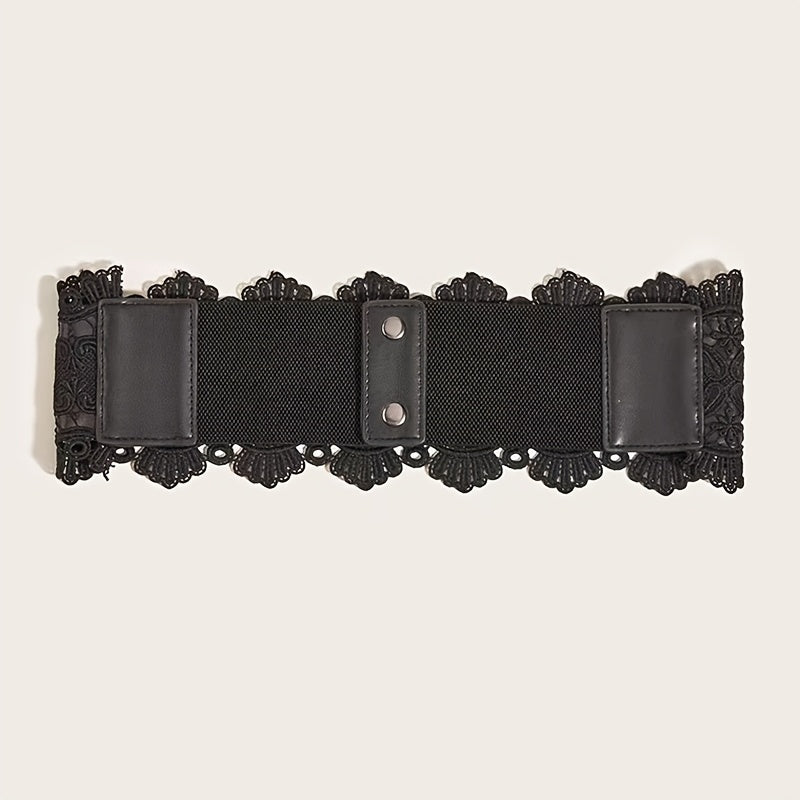 This lace waist cincher is perfect for evening outings and casual wear. It features a sweet style with a stretchy knit nylon material.