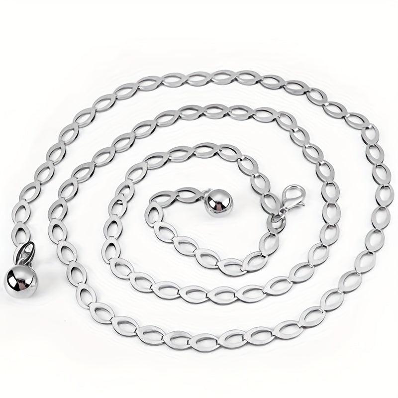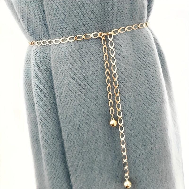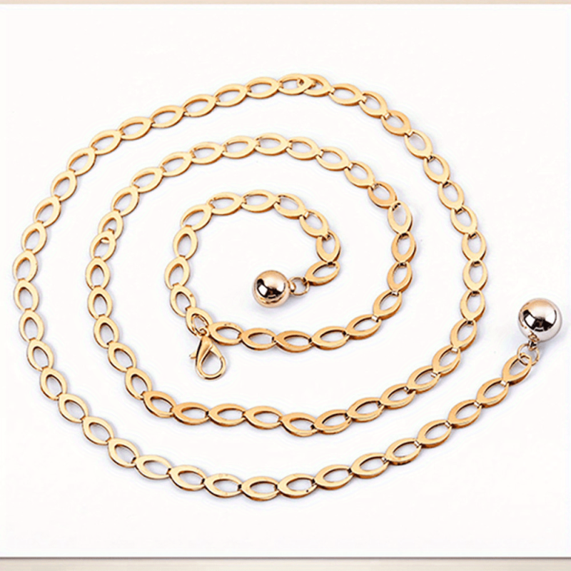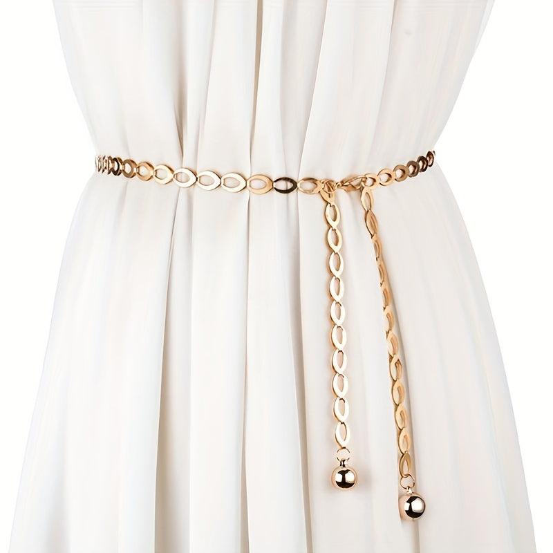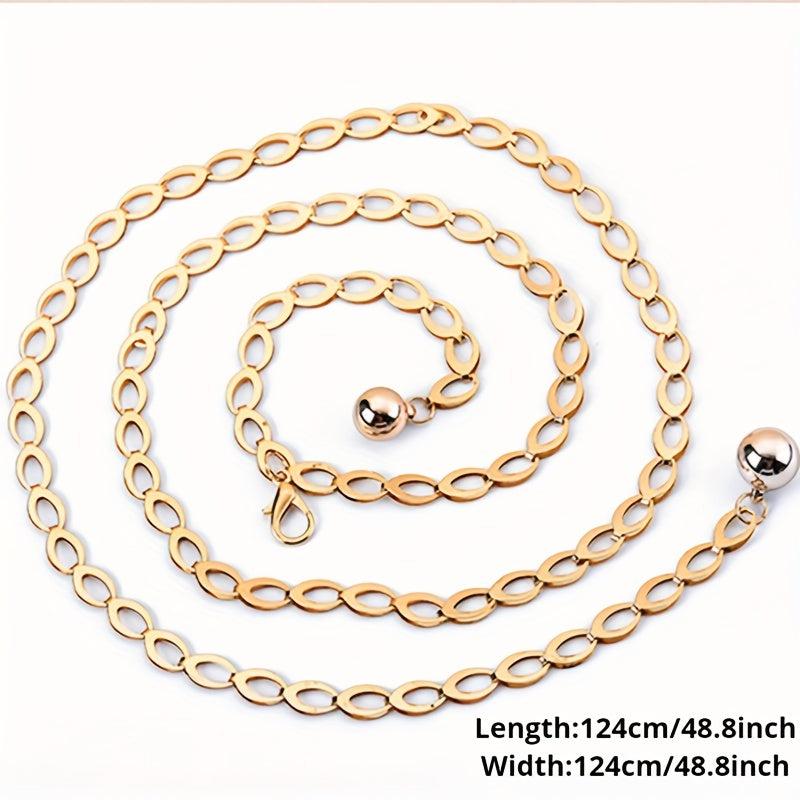 Add a touch of glamour to your outfit with this stylish metal chain body chain dress belt. Perfect for enhancing your look for a special occasion or night out.