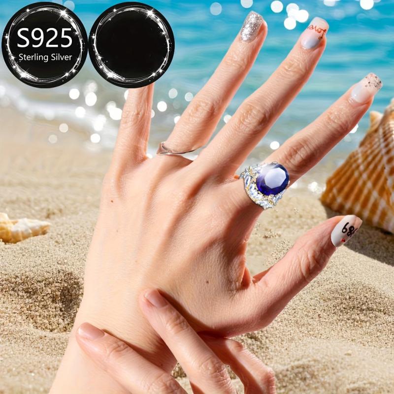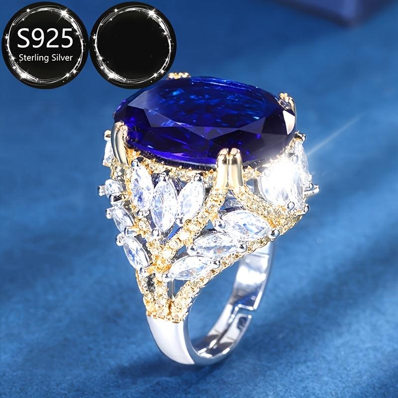 This stunning open ring features synthetic zirconia stones set in 925 silver, perfect for all seasons.