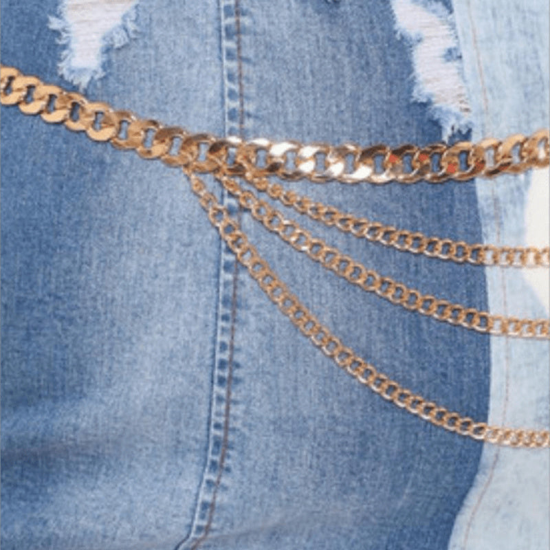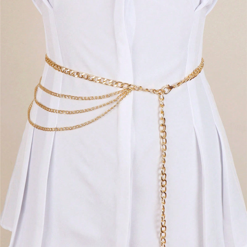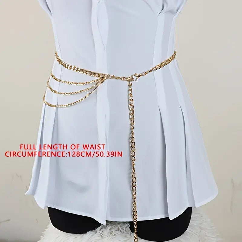 Upgrade your style with this trendy waist chain made of golden alloy. Perfect for adding a punk metal edge to your look.