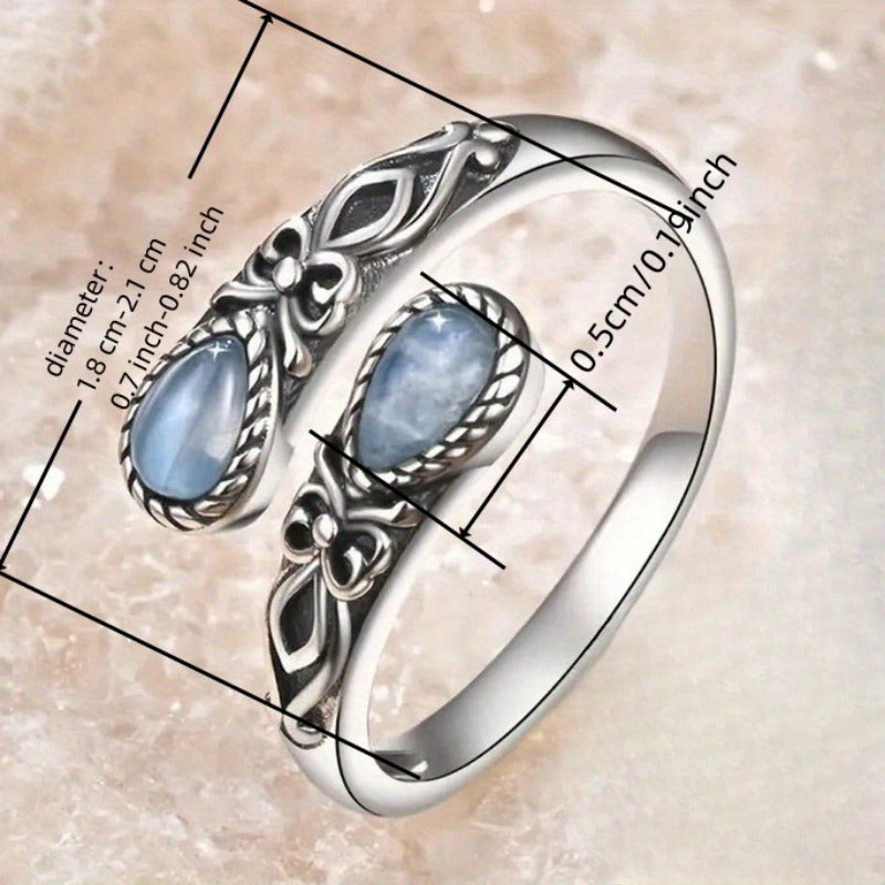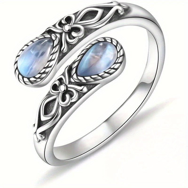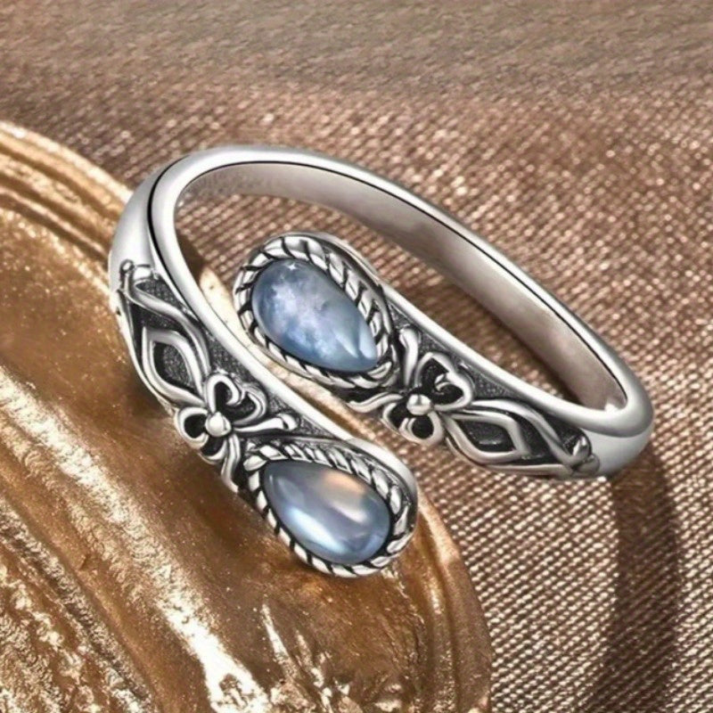 Women's Retro Bohemian Open Ring Set with Moonstone Spoon Shape Ring