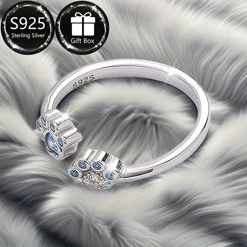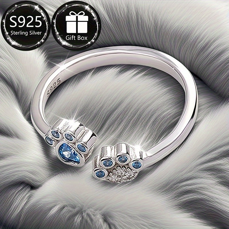This adorable S925 sterling silver ring features a cat paw design with synthetic zirconia inlay, making it a perfect gift for pet lovers. It is adjustable and hypoallergenic for daily wear.