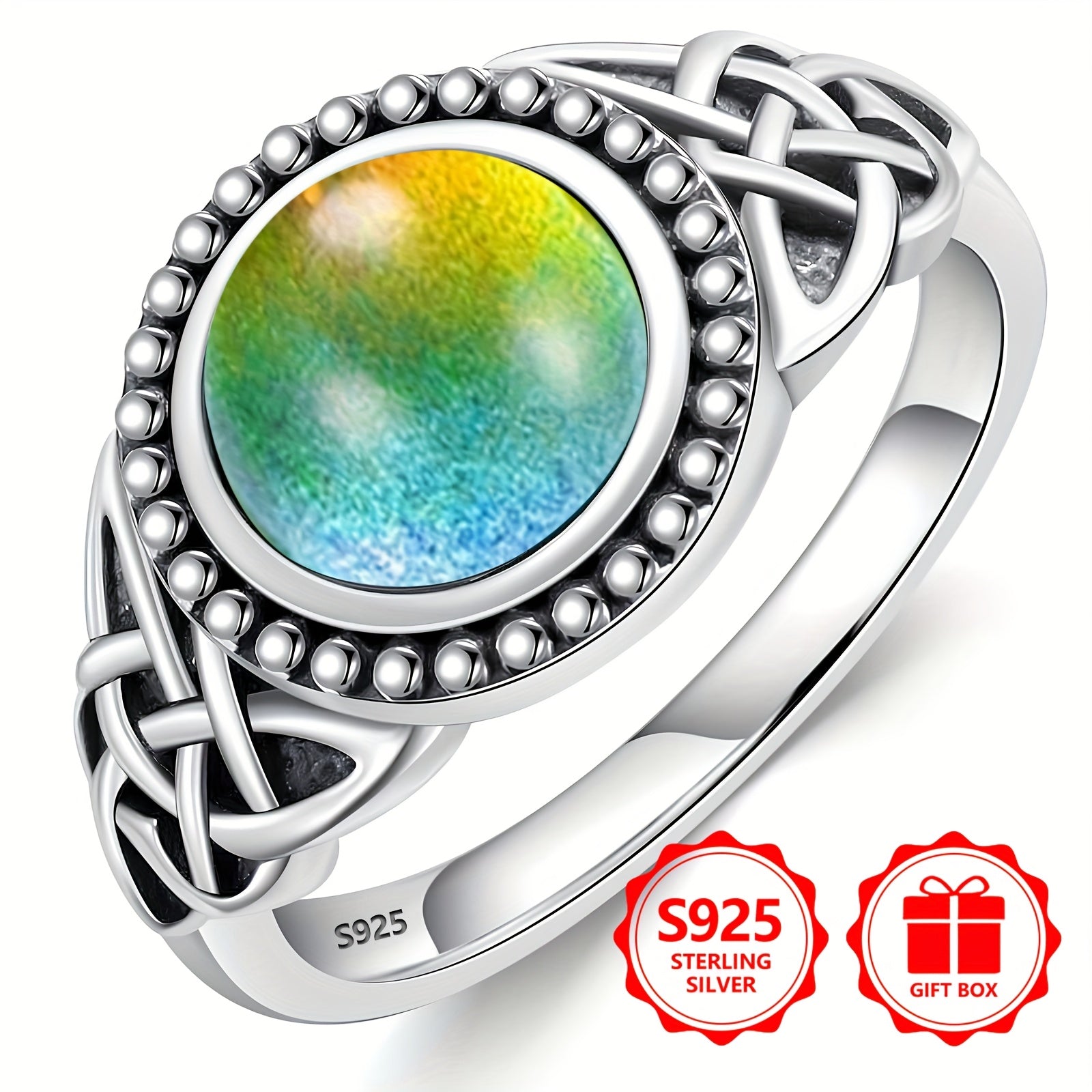 This beautiful ring features a Celtic Knot design with a mood sensing changing stone. Made of S925 silver, it is a unique and eye-catching piece of jewelry.