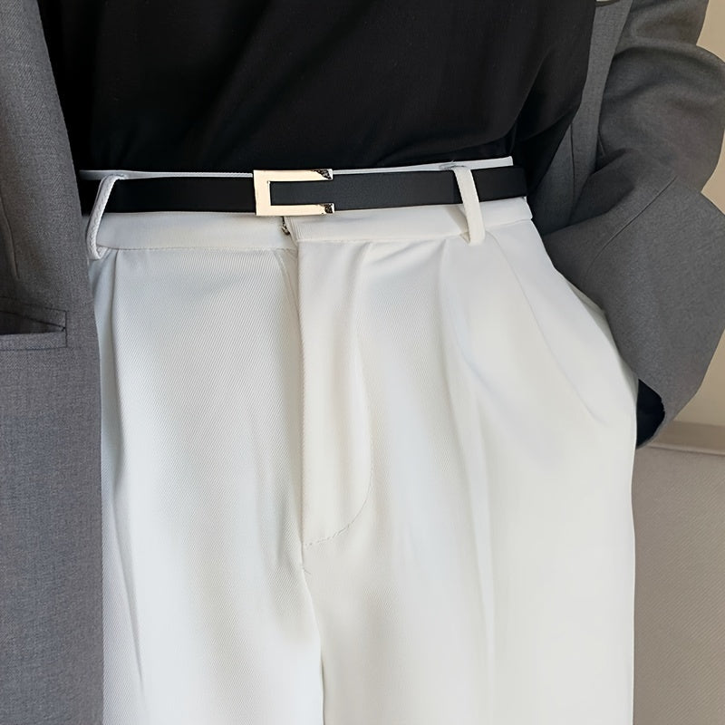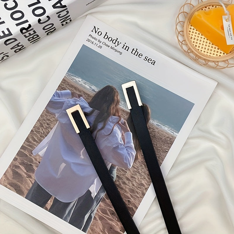 Add a touch of style to your outfit with this versatile slim belt featuring a golden tone square buckle. Perfect for pairing with dresses, pants, or casual attire.