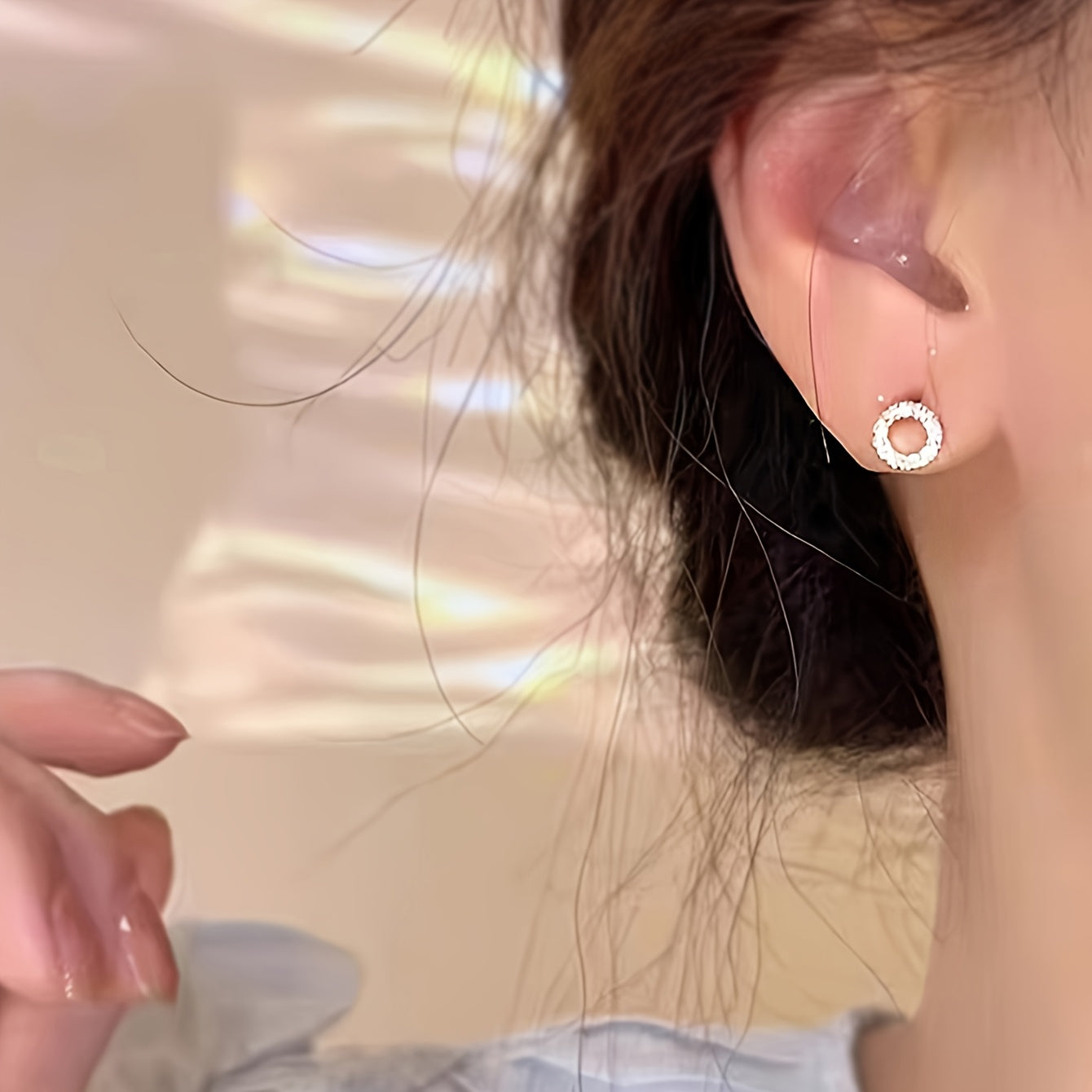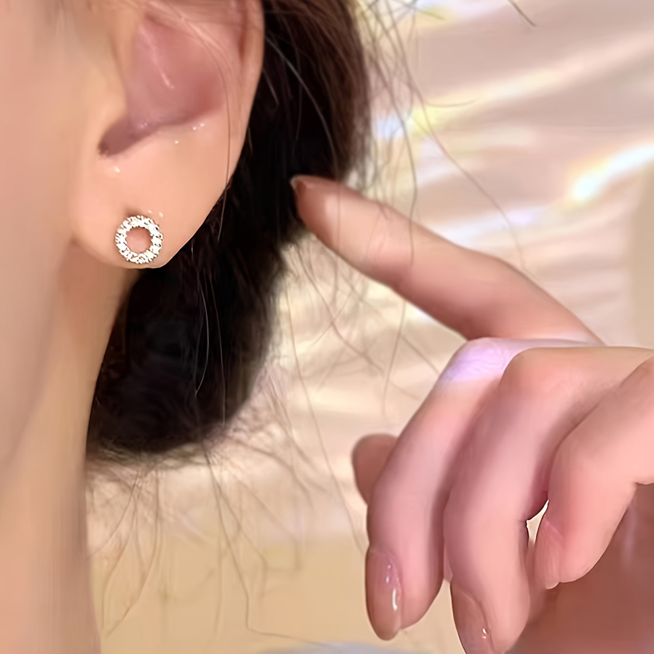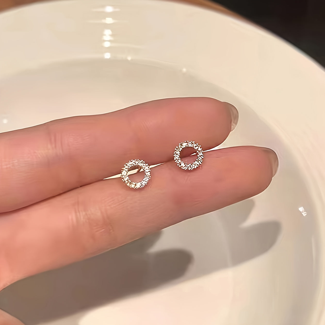 Chic and elegant women's stud earrings featuring a hollow circle design with sparkling rhinestone accents. Made from golden tone alloy, perfect for daily wear or parties.