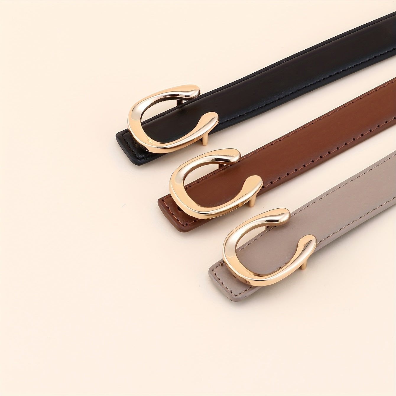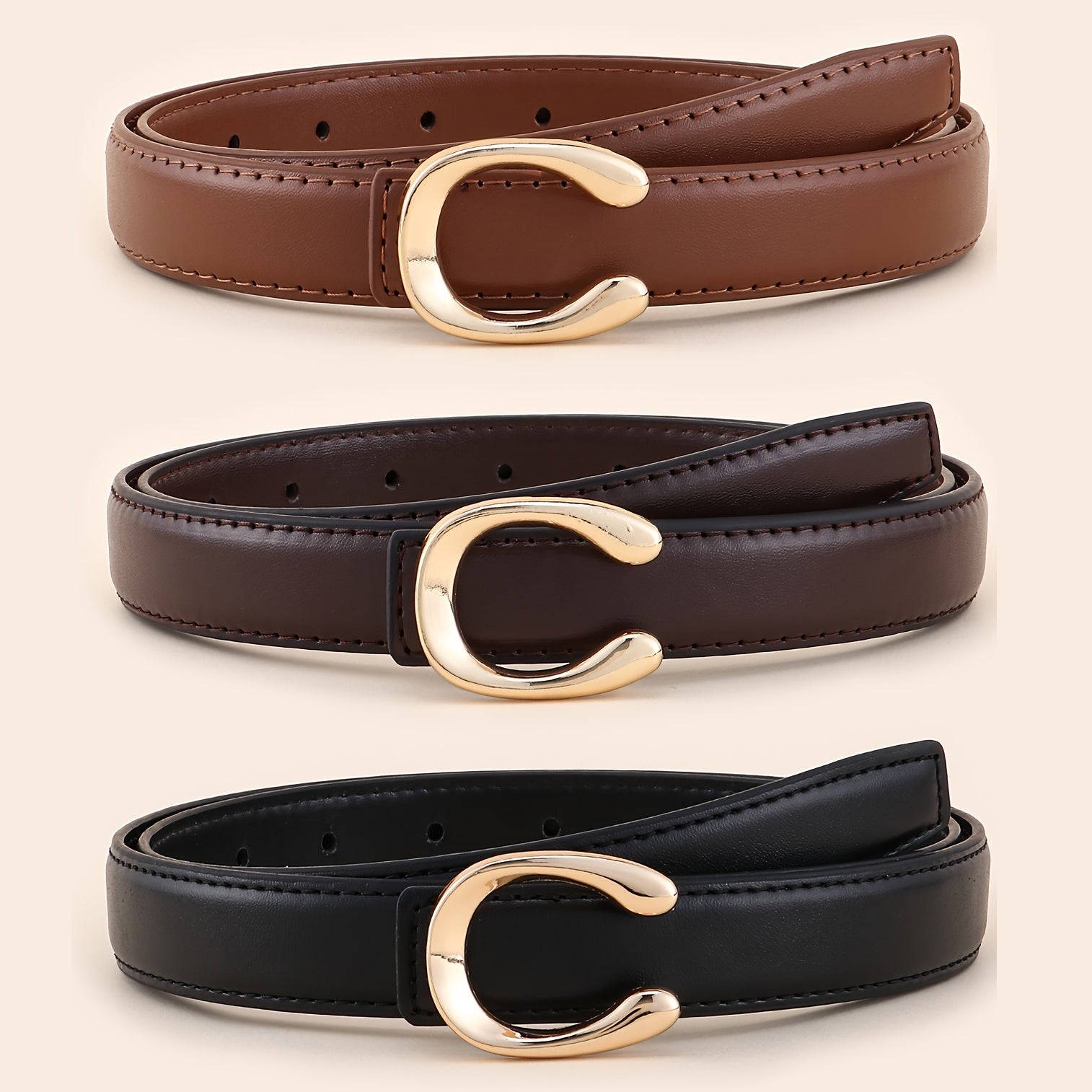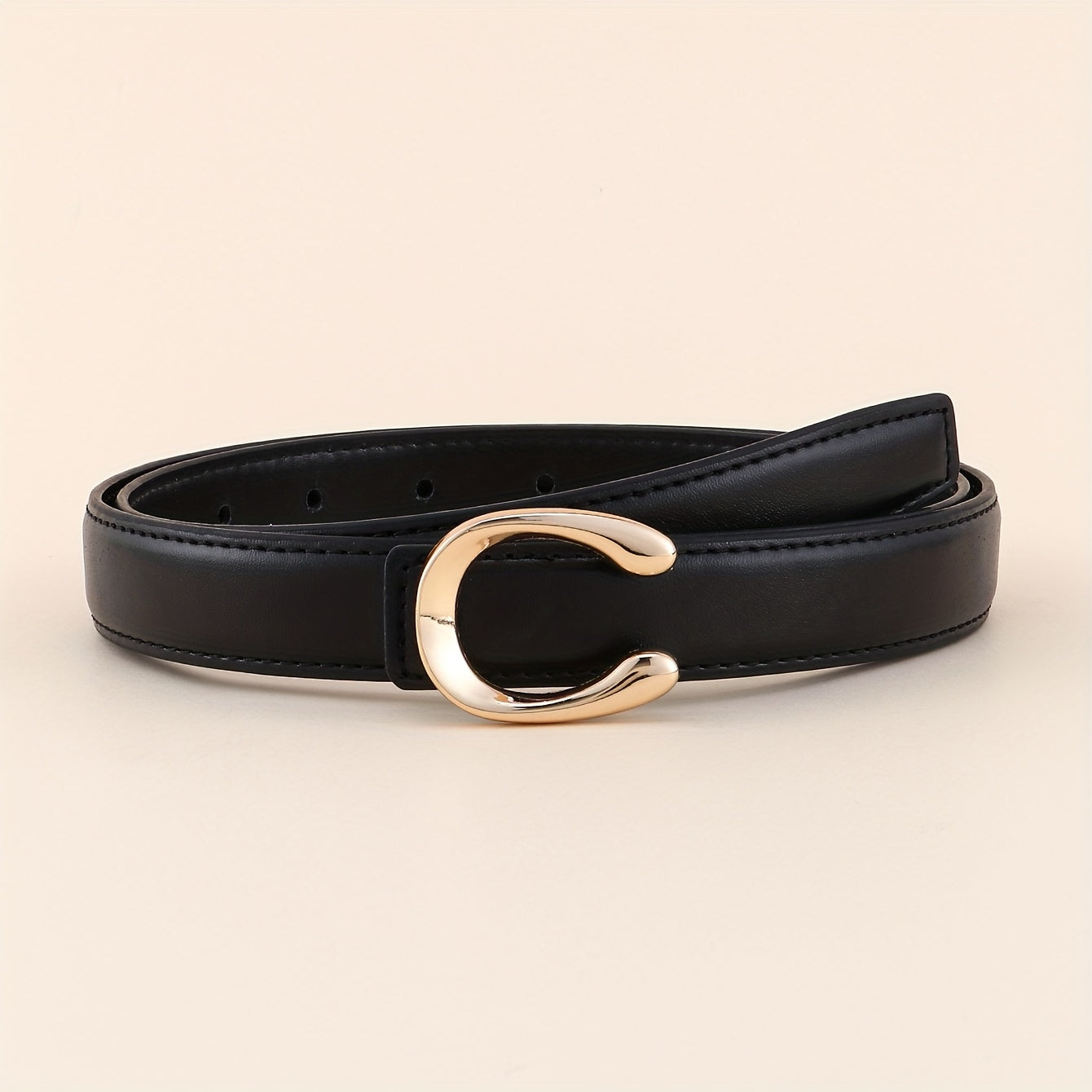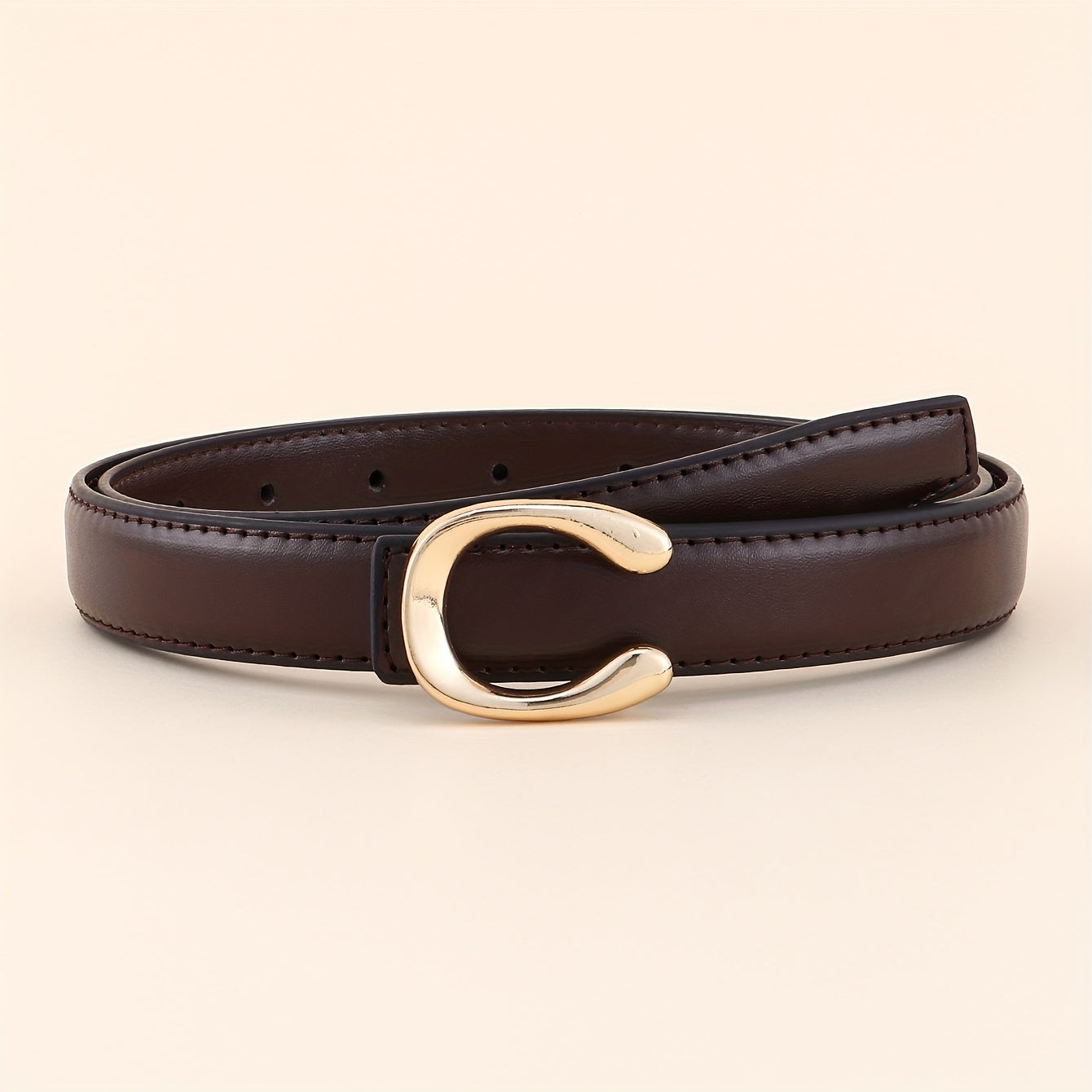 Add a touch of elegance to your outfit with this versatile belt featuring a golden tone buckle. Perfect for both casual and formal occasions.