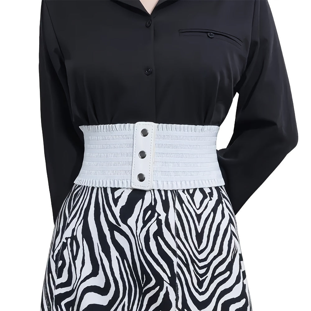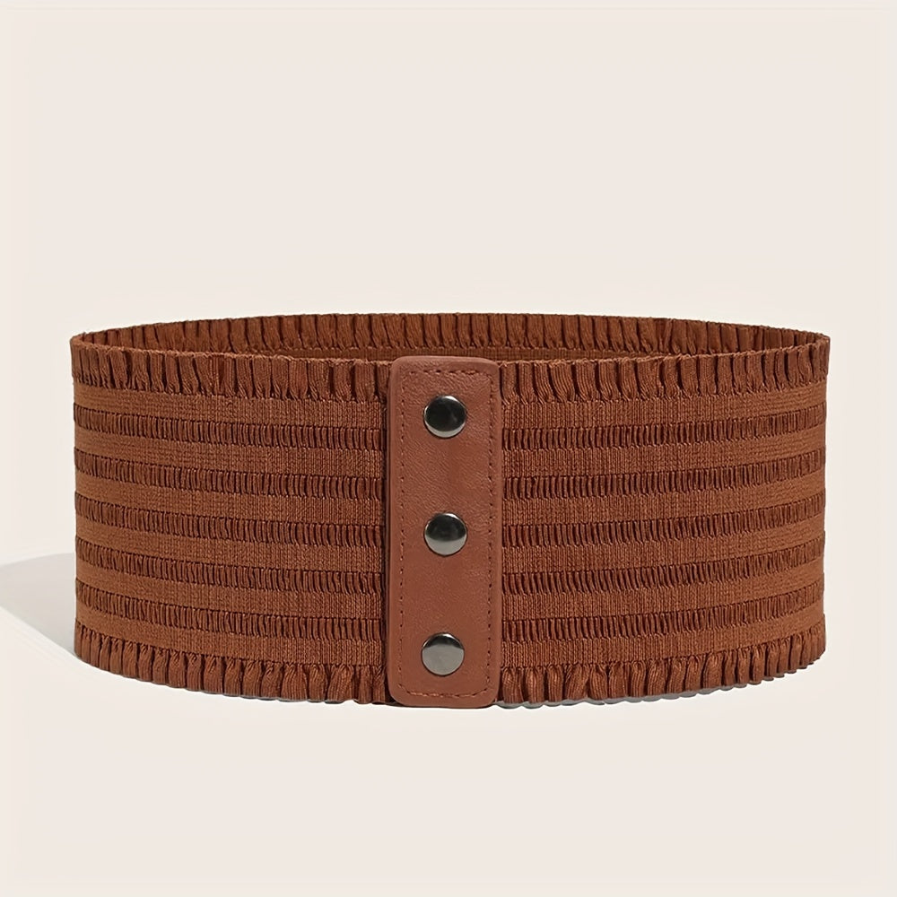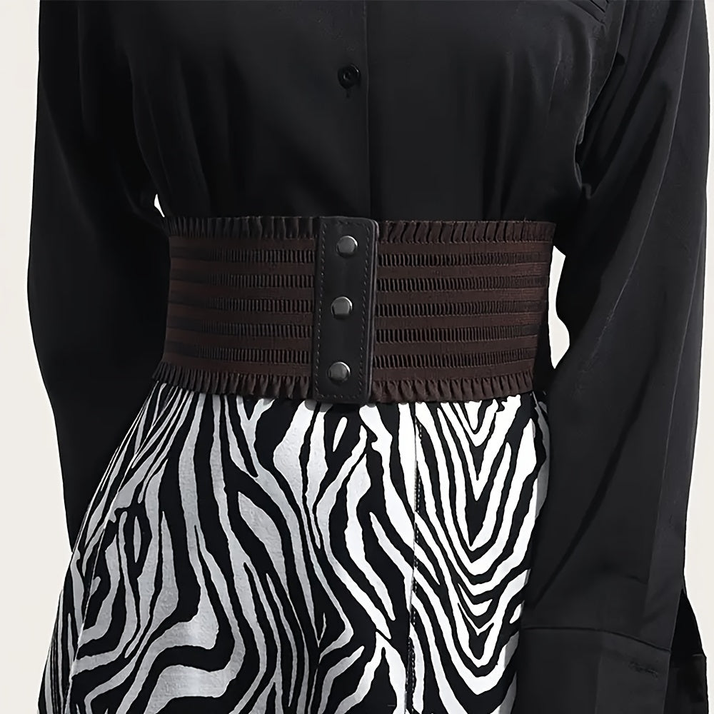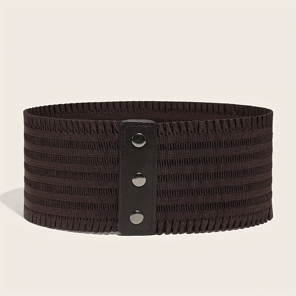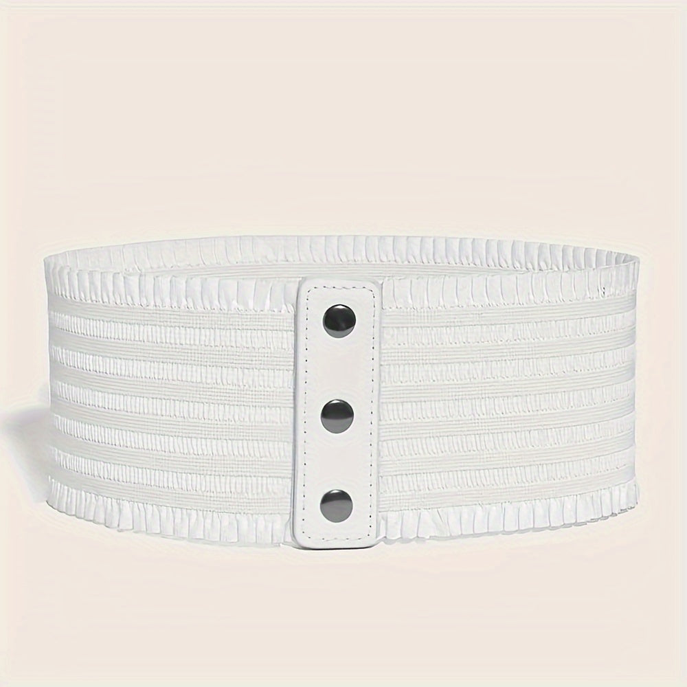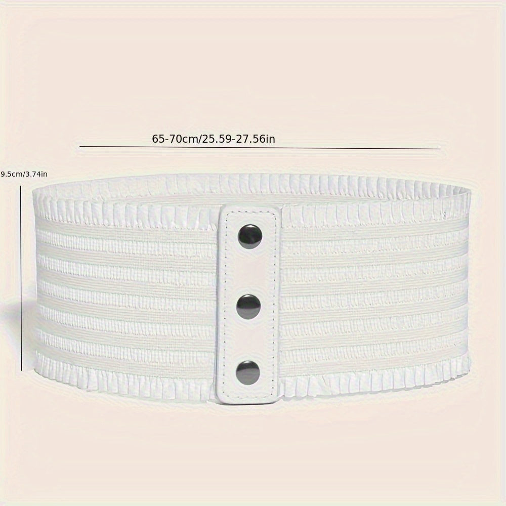 Add a touch of retro style to your outfit with this wide elastic lace waist belt featuring decorative buttons. Perfect for both casual and formal occasions, this belt is a stylish accessory that complements a variety of looks.