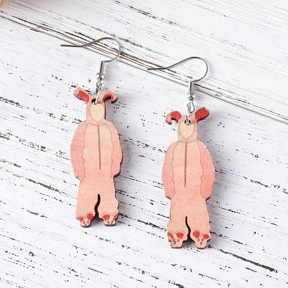These adorable wooden rabbit bunny earrings are the perfect Easter accessory. They are double-sided for a unique look and are sure to make a statement at any party or gathering. Give them as a gift for Easter, birthdays, or family parties.