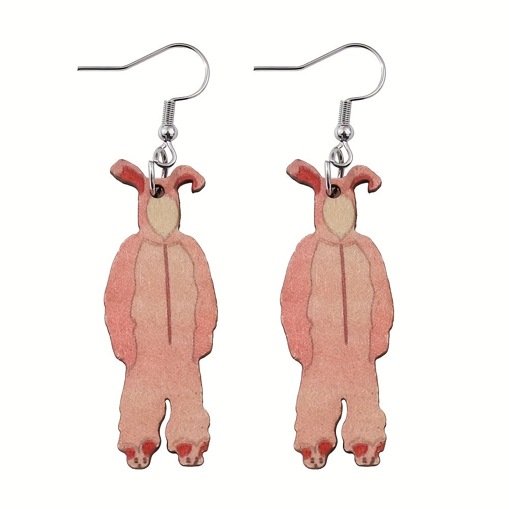 Women's Wooden Rabbit Bunny Double sided Easter Earrings