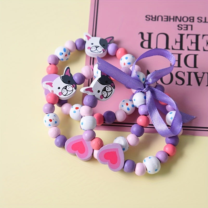 This set includes 3 stylish bracelets featuring wooden and acrylic beads in various cartoon-inspired designs. Perfect for adding a fun touch to any outfit.