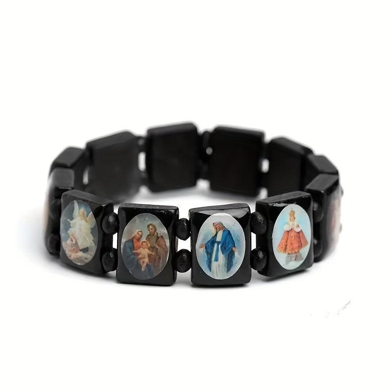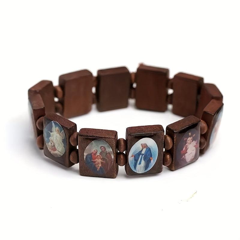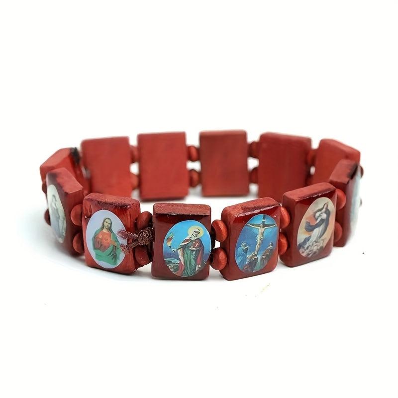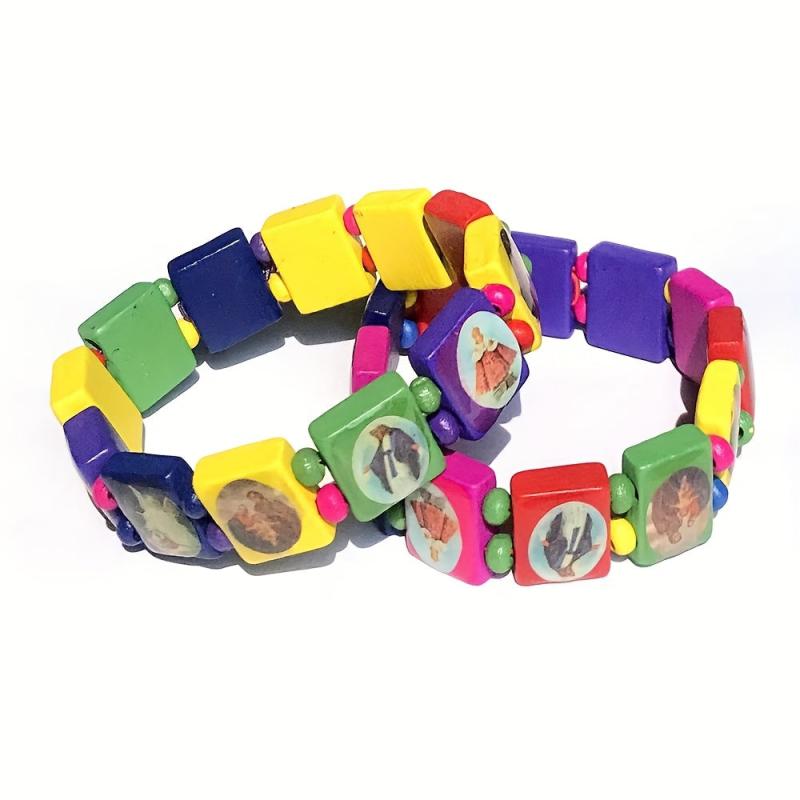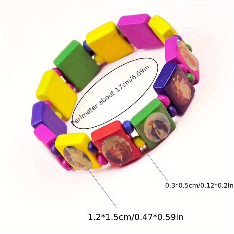 Wooden Bead Bracelet with St Father and St Mother for Ramadan, Vibrant Colors