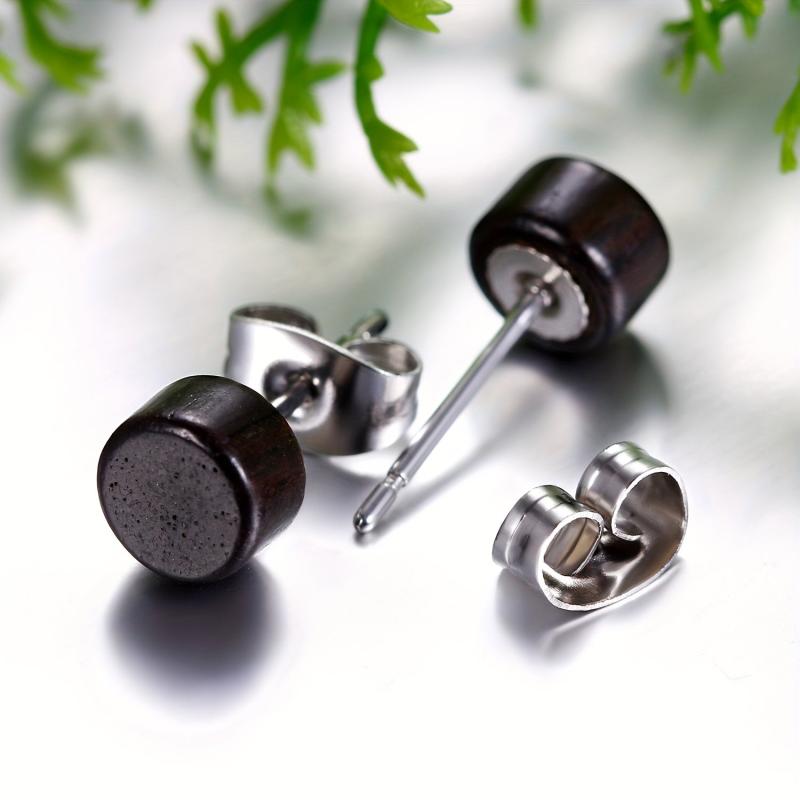 Wooden Earrings Stainless Steel Piercing Earrings 6mm 12mm