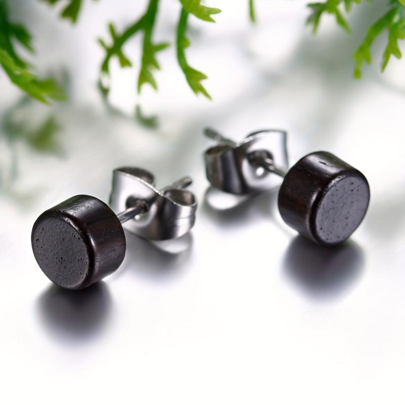 Elegant wooden earrings made with stainless steel, suitable for both men and women. Available in 6mm and 12mm sizes.