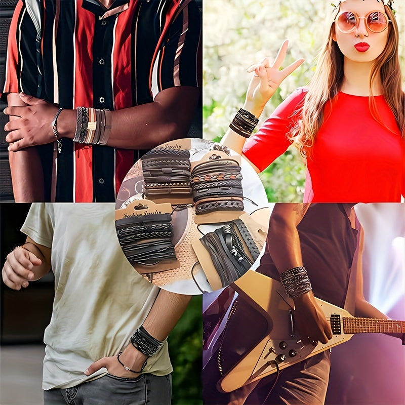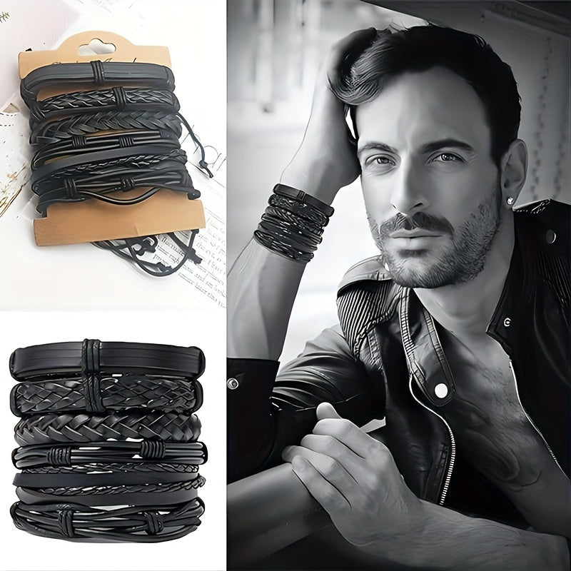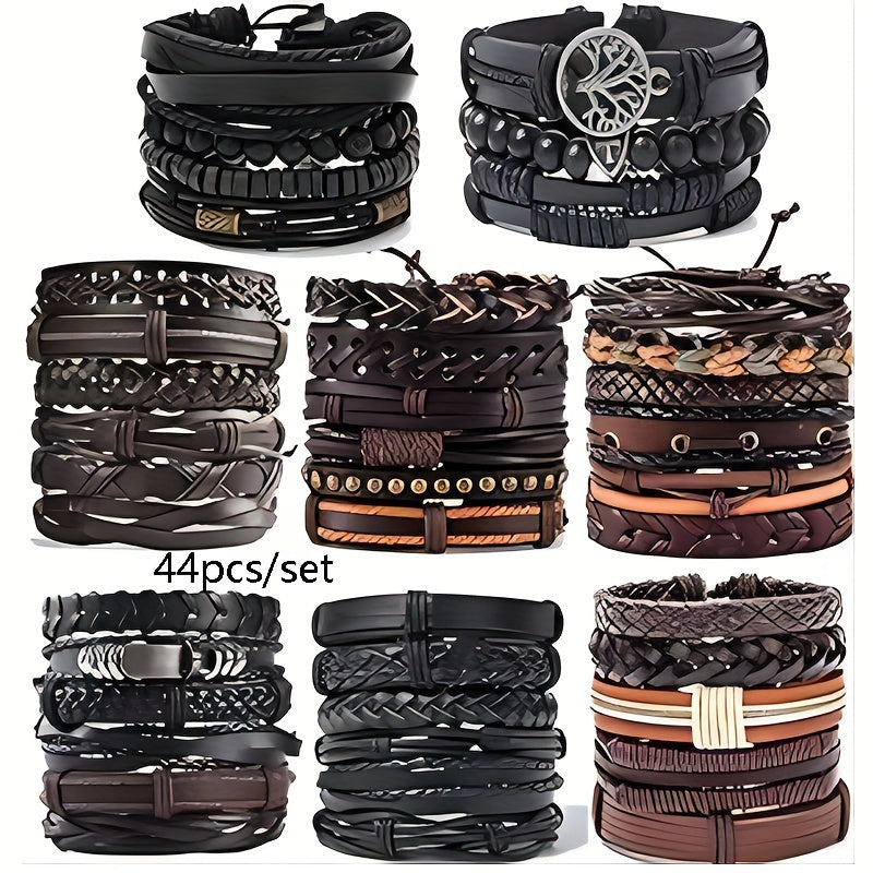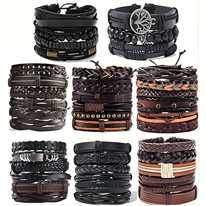 Woven Faux Leather Men's Women's Bracelet Cuff Wrap Twine Wood Beads Adjustable