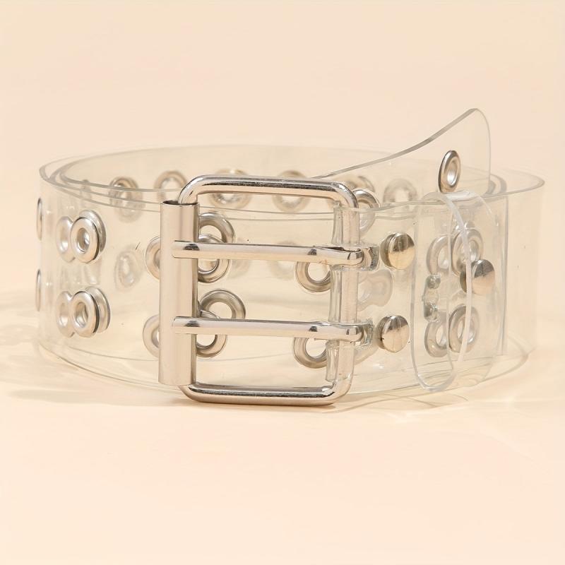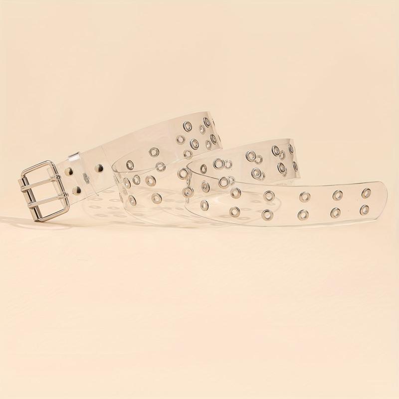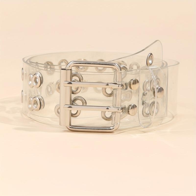 Y2K Retro PVC Belt with Double Buckle - Transparent Hollow Alloy Buckle