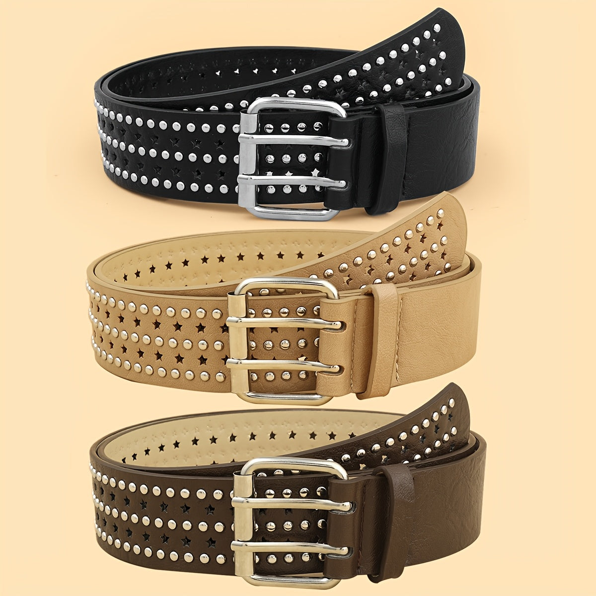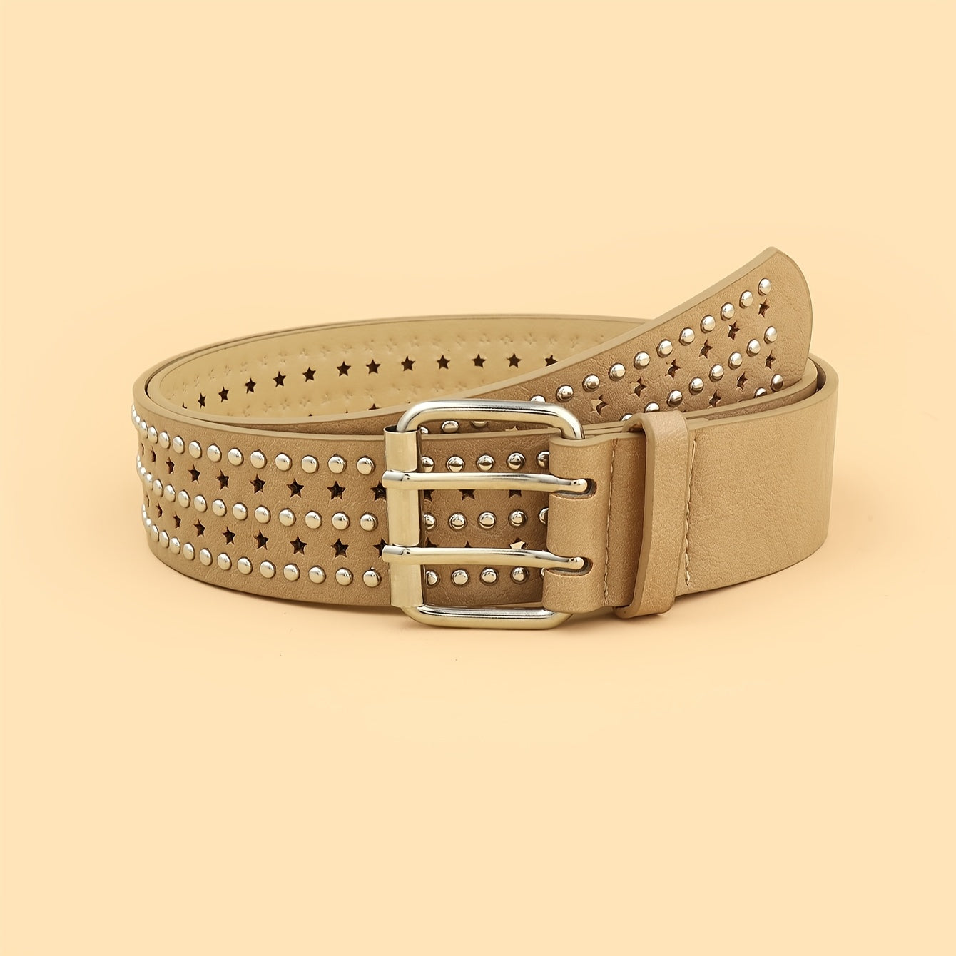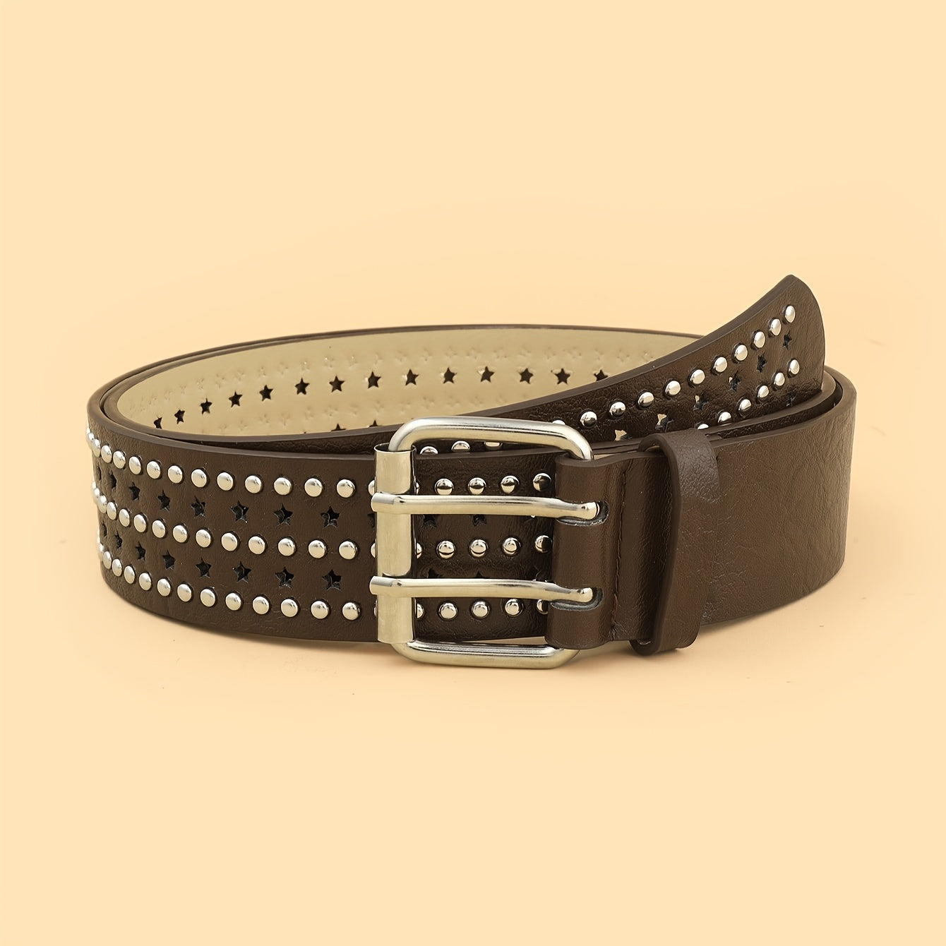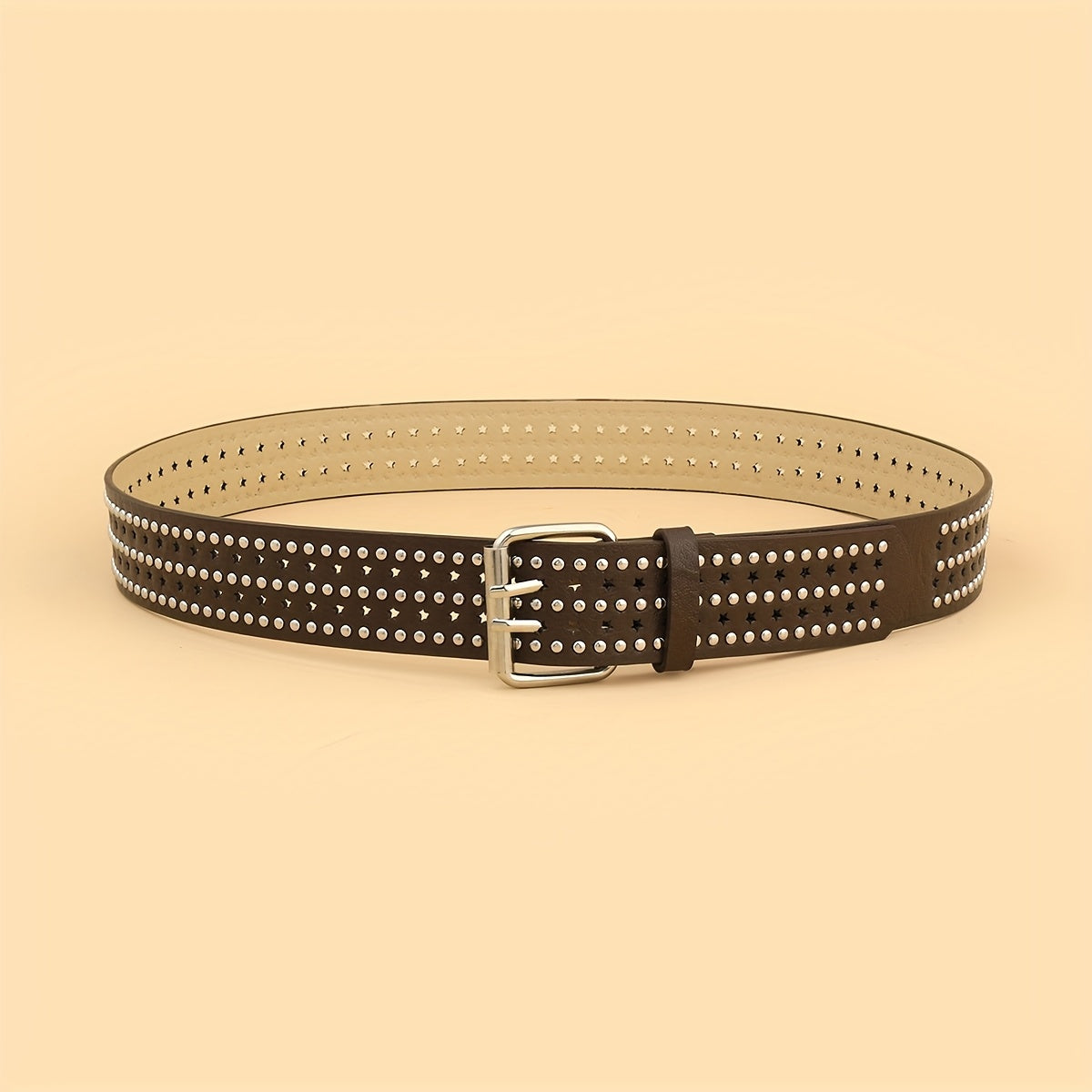 Y2K Rivet Belt for Women Hollow Punched Faux Leather
