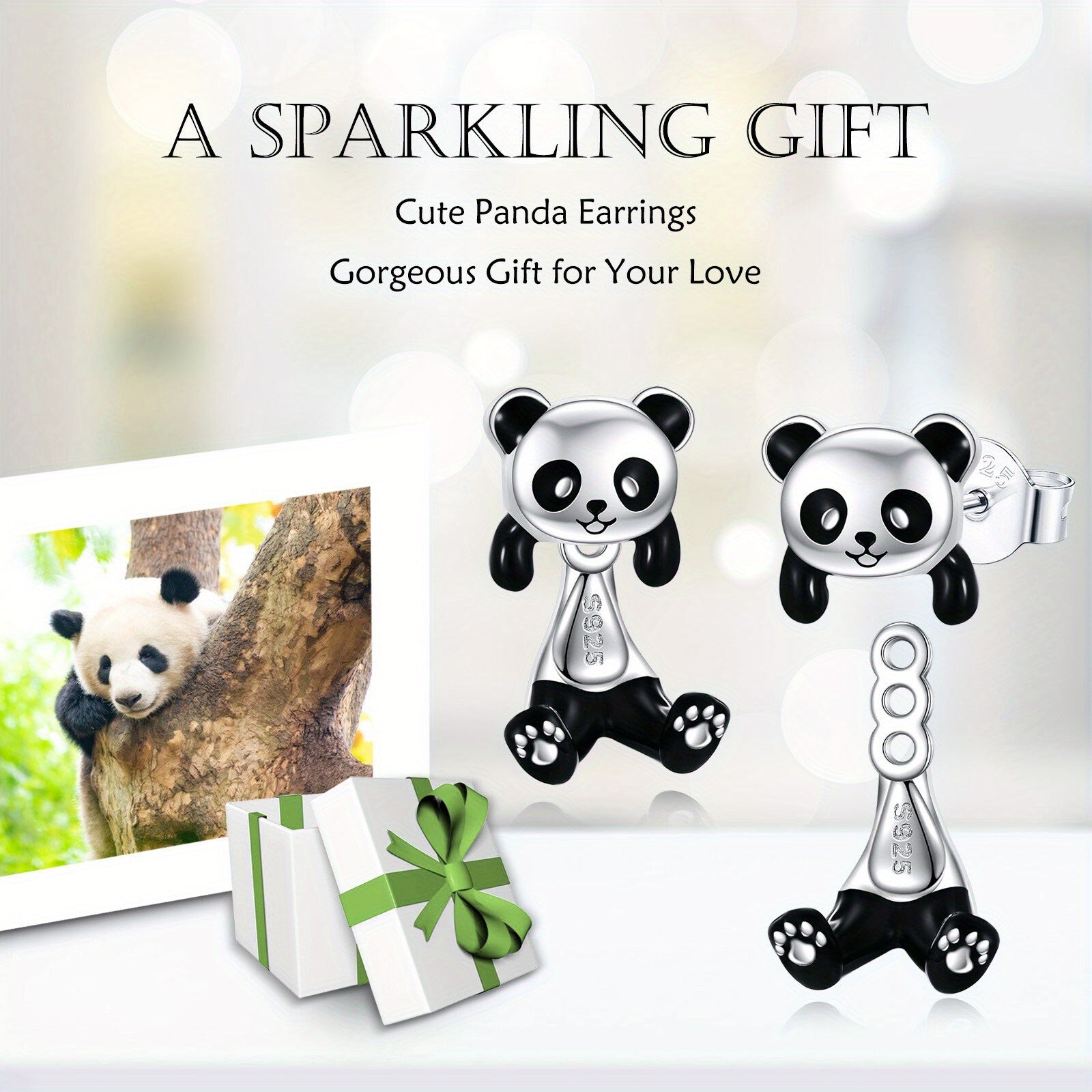 • 925 sterling silver panda earrings