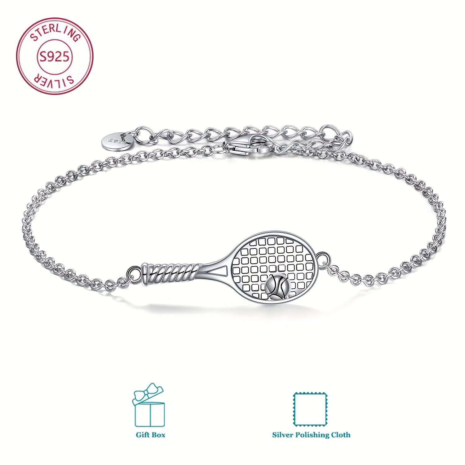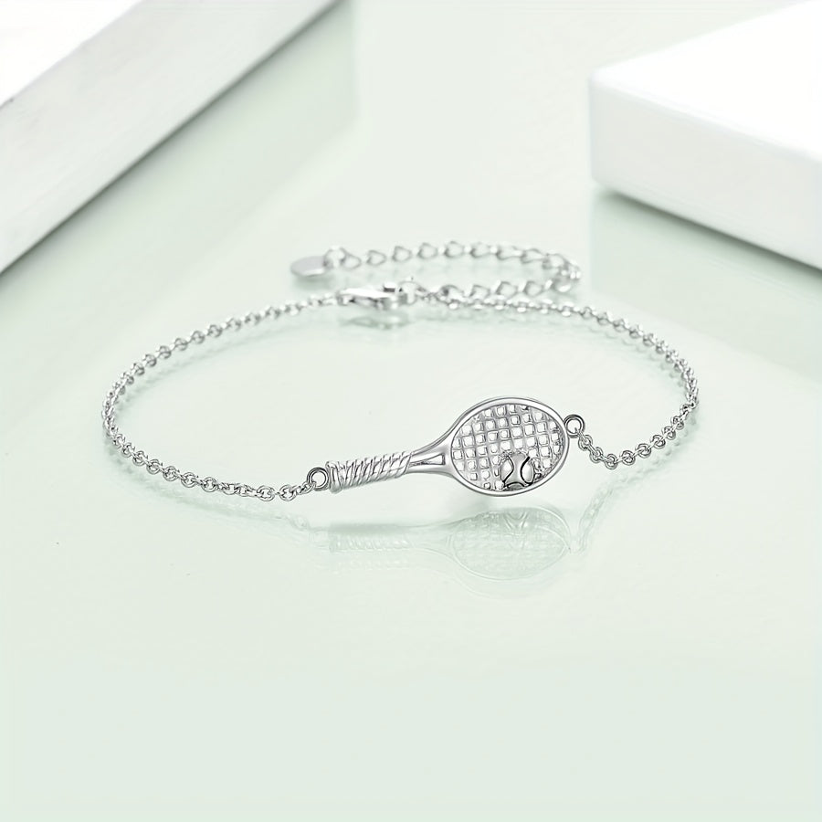 This tennis racket bracelet is perfect for tennis enthusiasts. Made of S925 silver, it is a great accessory for sports lovers.