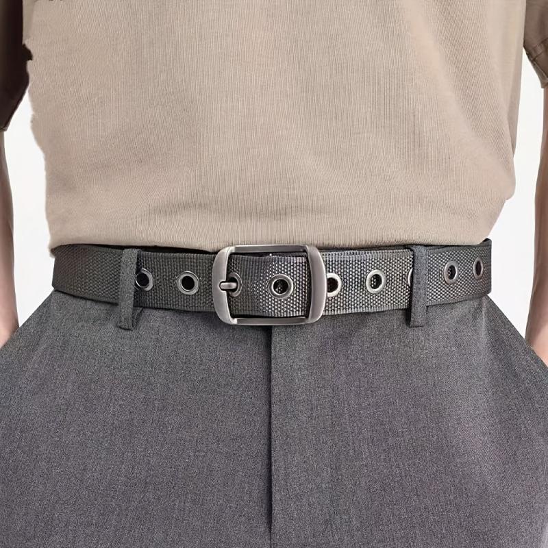 This versatile belt is made of thick nylon canvas, perfect for casual wear. It features a needle buckle for easy adjustment and is comfortable and breathable for all-day wear.