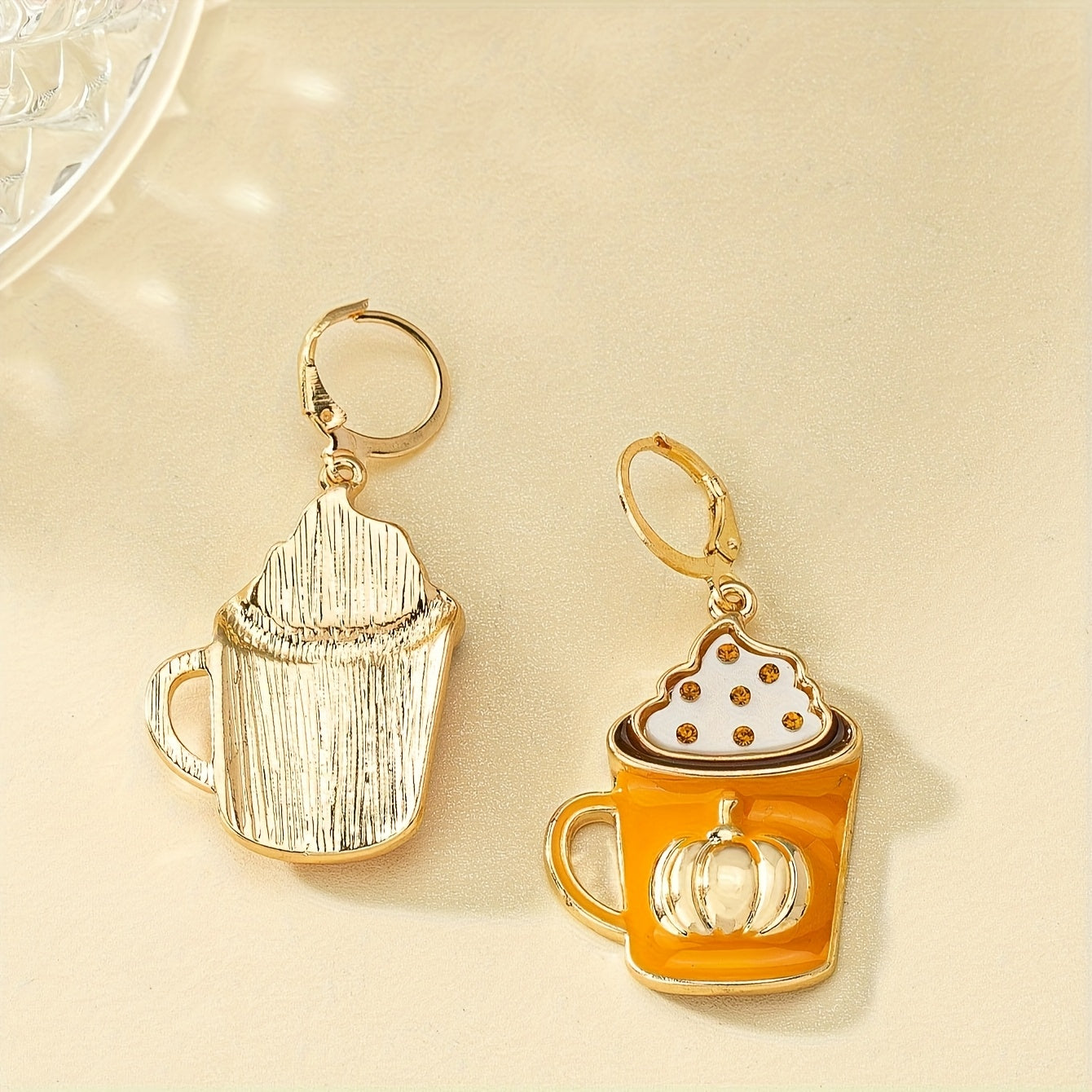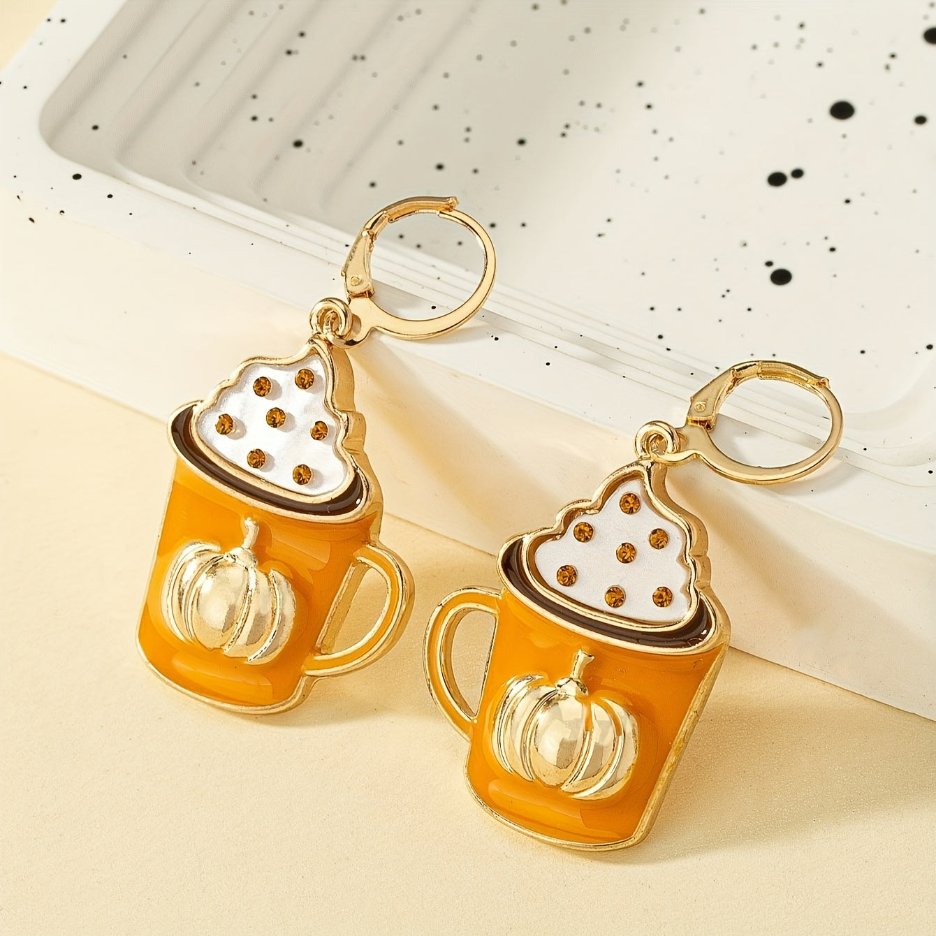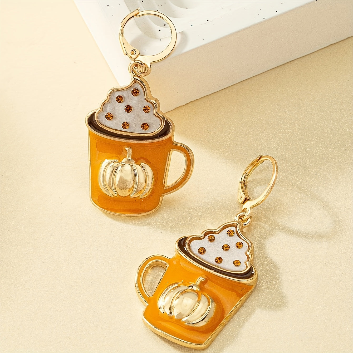 Zinc Alloy Dangle Earrings with Rhinestone Pumpkin & Coffee Cup