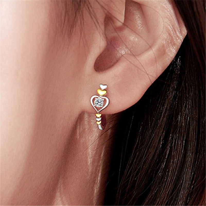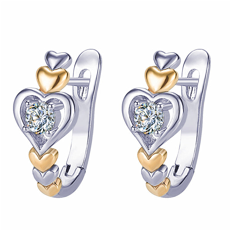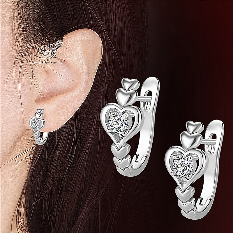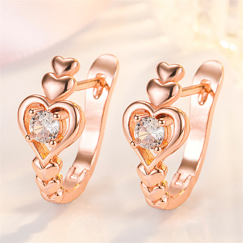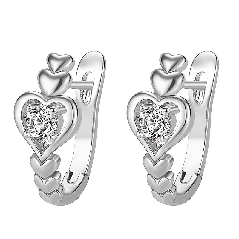 Dainty hoops with love heart design, perfect for weddings. Made of zircon in rose gold and silver tones.