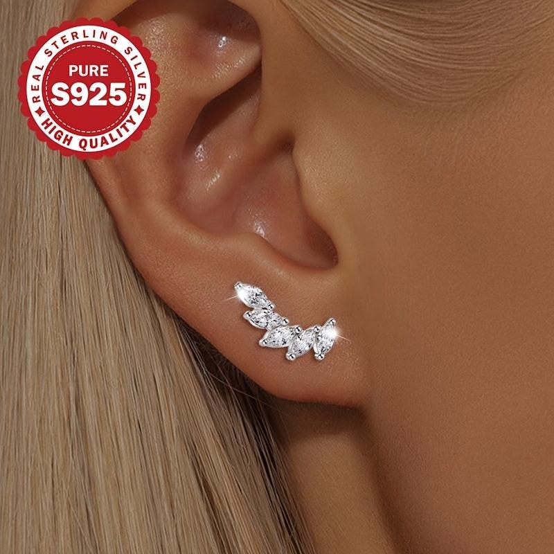 Zirconia Earrings Sparkling S925 Pure Silver Double Row Earrings for Daily Wear