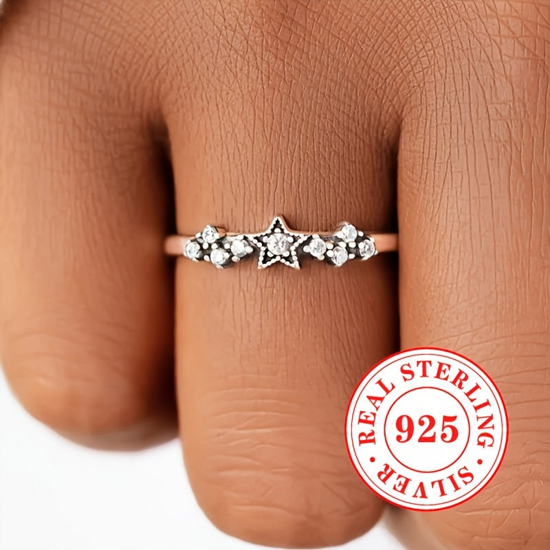 Elevate your style with this unique pentagram ring featuring zirconia encrusted design. Made of high-quality S925 sterling silver, this ring is lightweight and perfect for daily wear. It also makes a great gift for women who appreciate stylish accessories.
