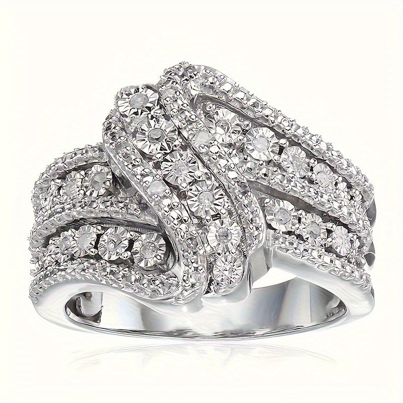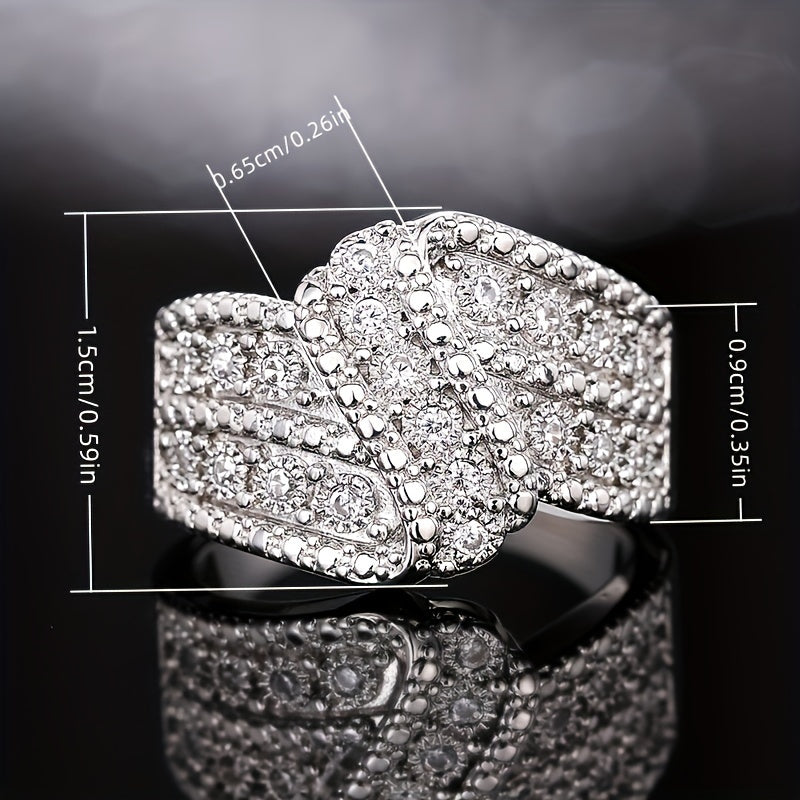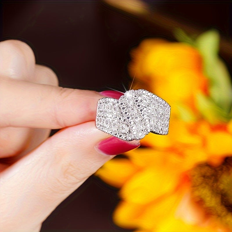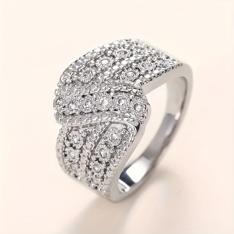 This stunning promise ring is elegantly embedded with sparkling zirconia, perfect for engagement and wedding banquets. A stylish and luxurious choice for any bride-to-be.